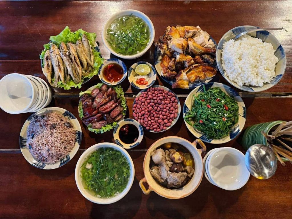 होमस्टे मेहमानों के लिए भोजन सेवा प्रदान करता है और नॉन-स्टे मेहमानों के लिए नाश्ता, पेय। होमस्टे के कुछ विशेष व्यंजन हैं जैसे कि लाउ, विशेष व्यंजन, नाश्ते के लिए नूडल्स,...
