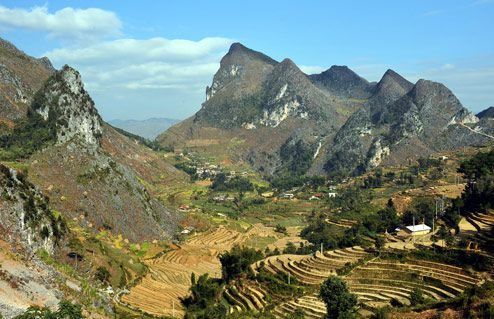The stone plateau stands out with its limestone mountain terrain, deep valleys, and interspersed villages. Some notable points include Dong Van Old Town, Vuong Family Mansion, and Ma Pi Leng Pass.