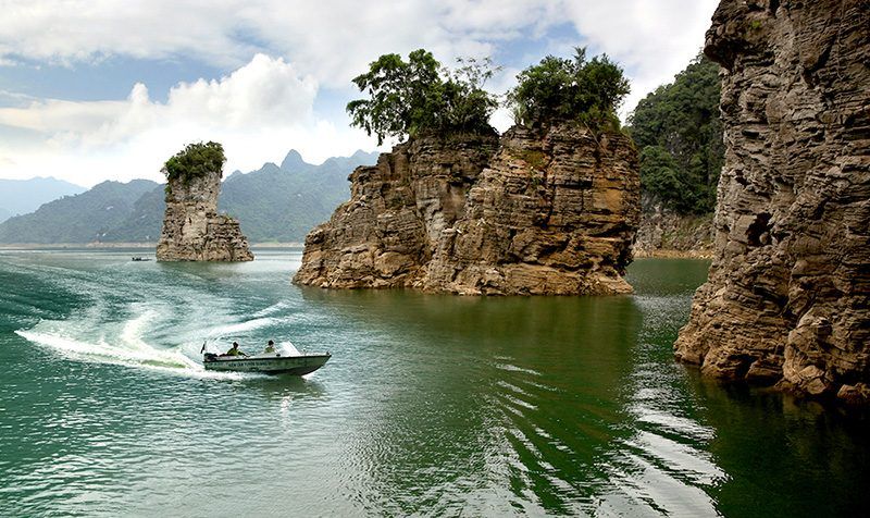 Na Hang Lake is the most famous tourist destination in Tuyên Quang. The vast lake is nestled among limestone mountain ranges, creating a poetic and majestic landscape.