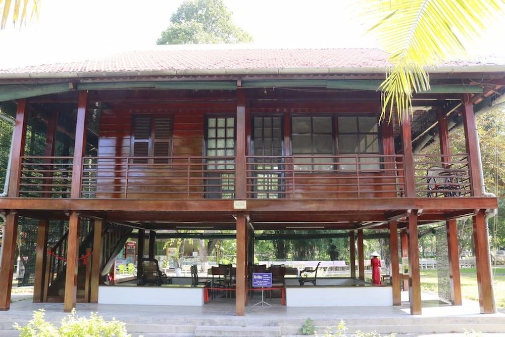 Visiting Uncle Ho's simple stilt house during the mausoleum visit (Source: baophapluat.vn)