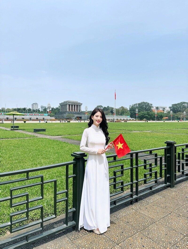 Young people eagerly taking photos in traditional attire in front of the mausoleum to celebrate National Day. (Source: Tuan Chen)