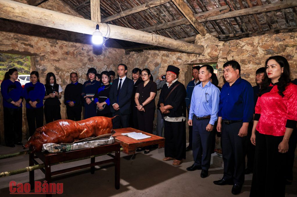 The Thanh Minh festival in Quảng Uyên commune is also associated with the custom of worshiping the deity at the Thanh Minh Temple, with the hope of praying for bountiful harvests and peaceful villages. The ritual part is held solemnly with the offerings at the Snake Temple (Slấn) and the Bó Rao water source - sacred places linked to the spiritual life of the local people. This is an occasion to wish for good weather, bountiful harvests, and a peaceful life.