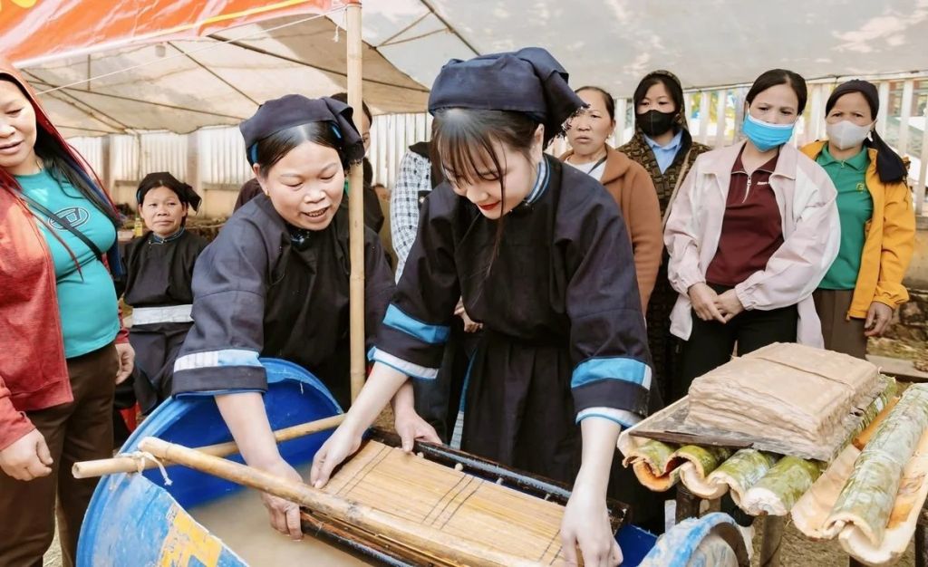 Meanwhile, the festival activities are lively with many events rich in cultural identity. Highlighting the festival is the display of colorful sticky rice from 11 hamlets in the Phúc Sen area, along with traditional culinary spaces serving visitors.