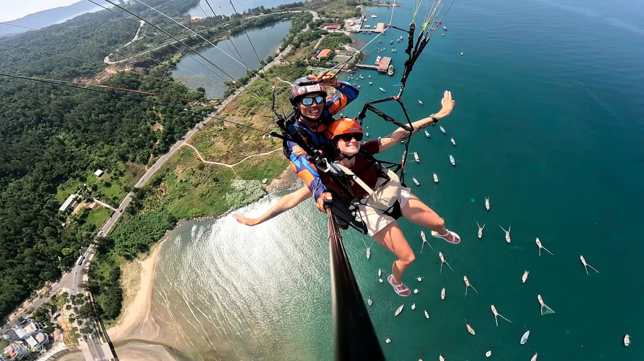 Chỉ trong vài giây, bạn sẽ thấy mình bay lượn giữa trời xanh, dưới là biển và rừng hòa quyện – một khoảnh khắc tự do hiếm có.
